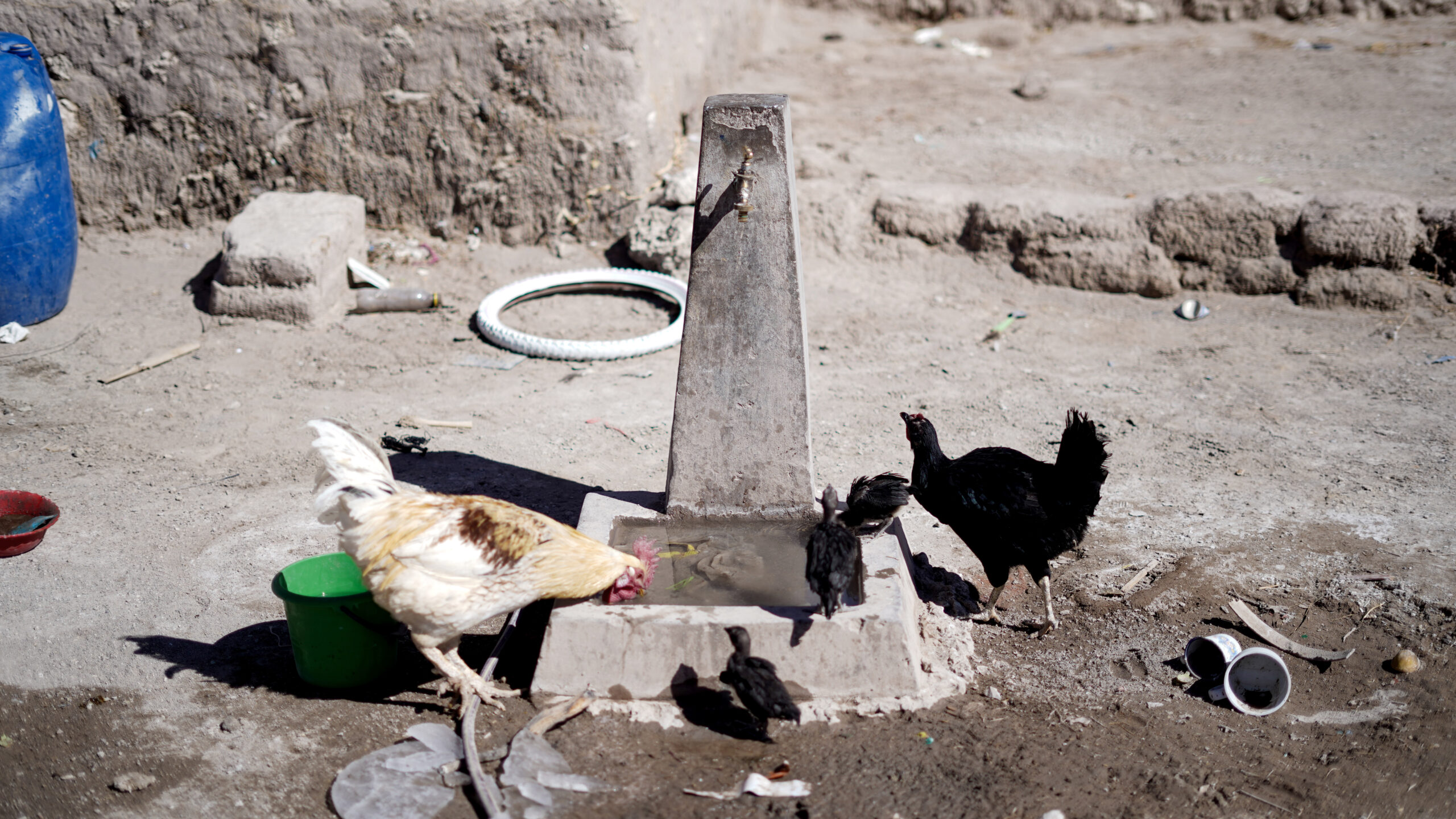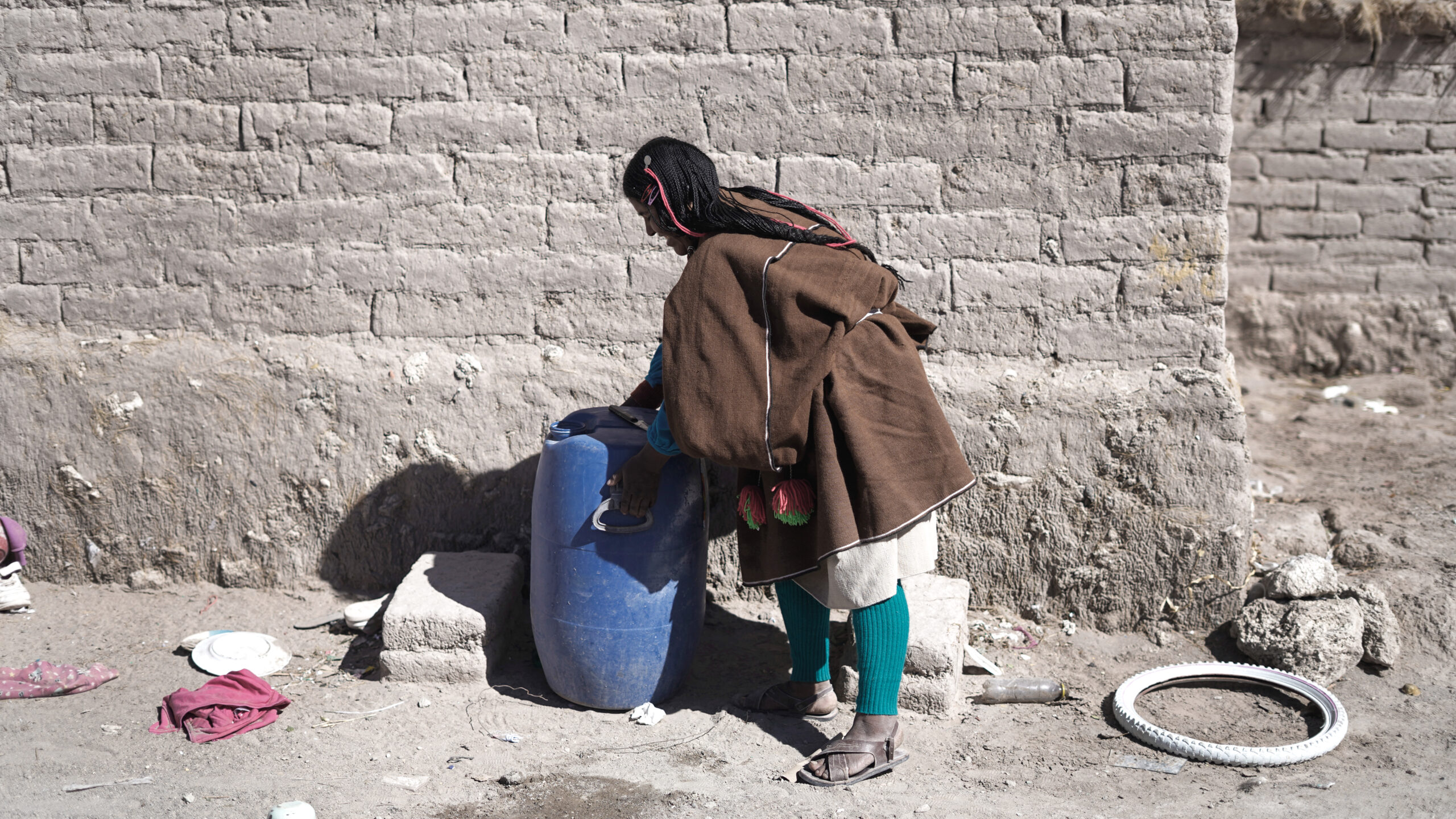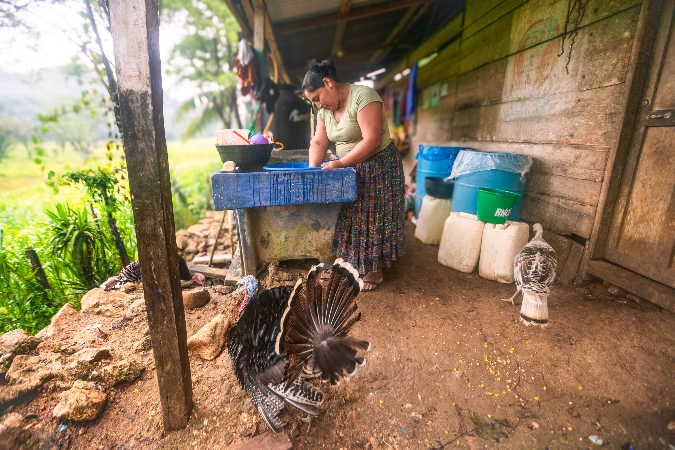 Entonces las mujeres captan agua de lluvia en unos baldes grandes a ladito de la casa. Y cuando eso no es suficiente, por suerte conocen otro lugar debajo de la tierra.