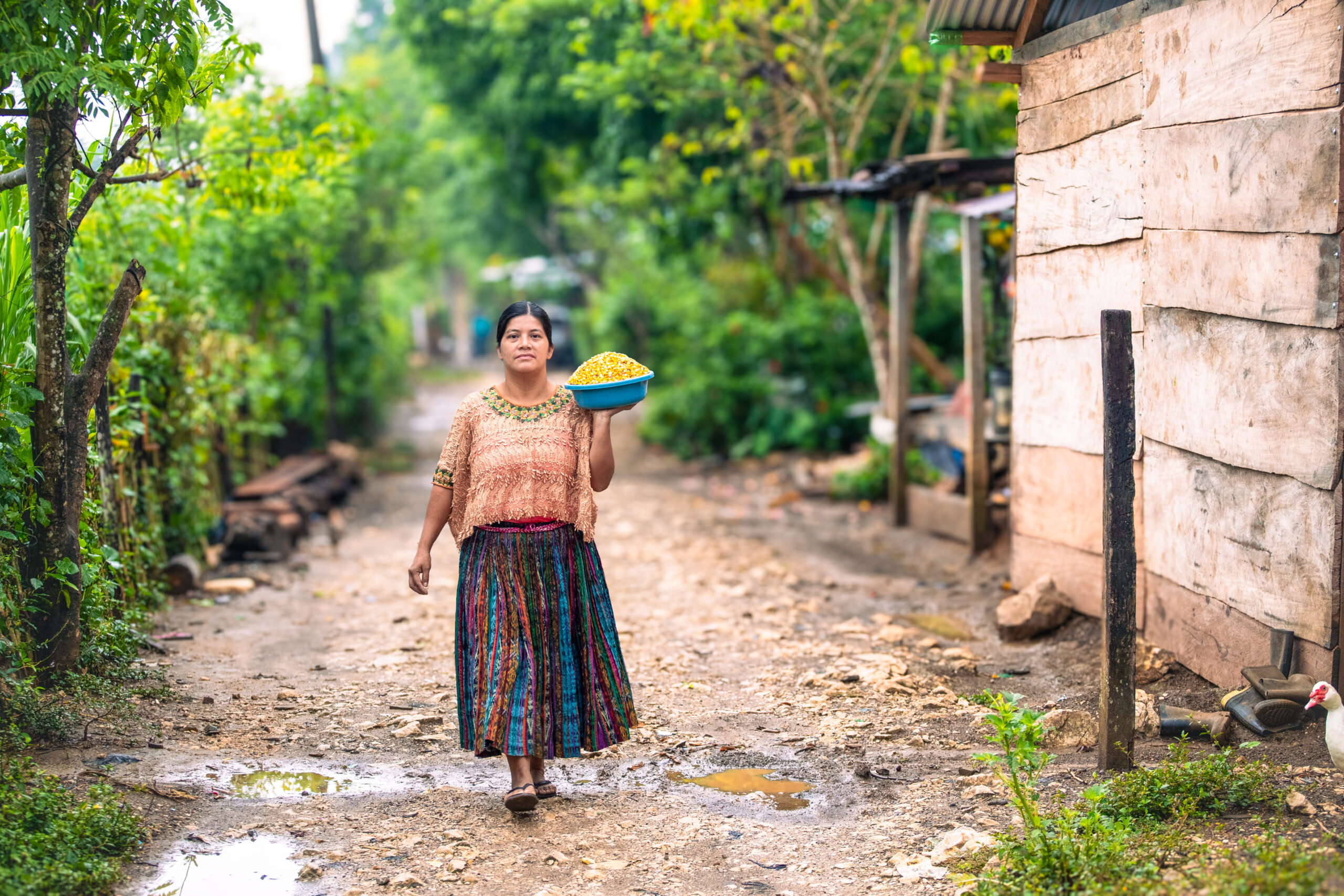 Rosa María Pérez Lainez de 30 años, vive en la aldea Ixtahuacan Chiquito y pertenece al pueblo indígena Maya Mam. Lleva 20 años viviendo aquí. Llegó con su abuela, pero ella murió muy joven. Y su mama se fue al otro lado (EE.UU.), migrar es costumbre para mucha gente de aquí, cuando Rosa Mará tenía 6 años su mamá se fue, ahora es una señora de 30 años con cinco hijos. Rosa María cuenta sobre los grandes desafíos con el agua. O viene tan fuerte que arrasa con todo en su camino. O es muy escaso y hay sequía. “Los años anteriores había más agua. Ahora los cultivos se afectan mucho por la falta de agua y por plagas. Mucho el tiempo se está cambiando,” nos cuenta la mujer Maya Mam.
