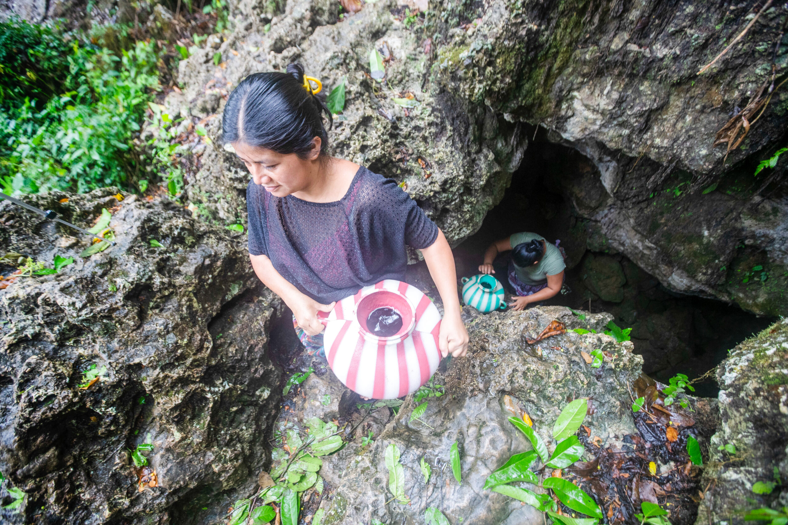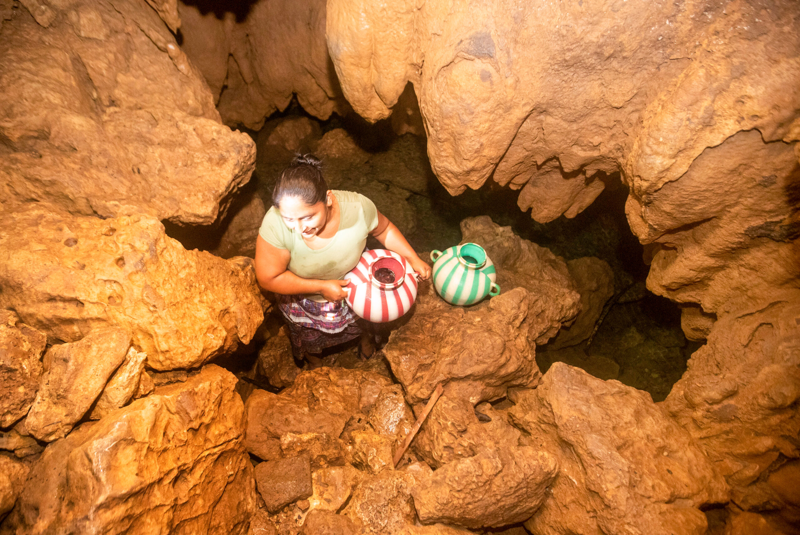 Cuentan que a veces la cueva también se seca. En estas situaciones tienen que pedir un permiso especial al espíritu de la cueva, para adentrar a la otra dimensión. Prenden una velita y hacen una ofrenda para pedir este permiso. La visita estilo ciencia ficción a la cueva se ha vuelto una cotidianidad para estas mujeres indígenas en Guatemala. Son mujeres como ellas quienes enfrentan más dificultades para el acceso al agua, para cubrir sus necesidades básicas.