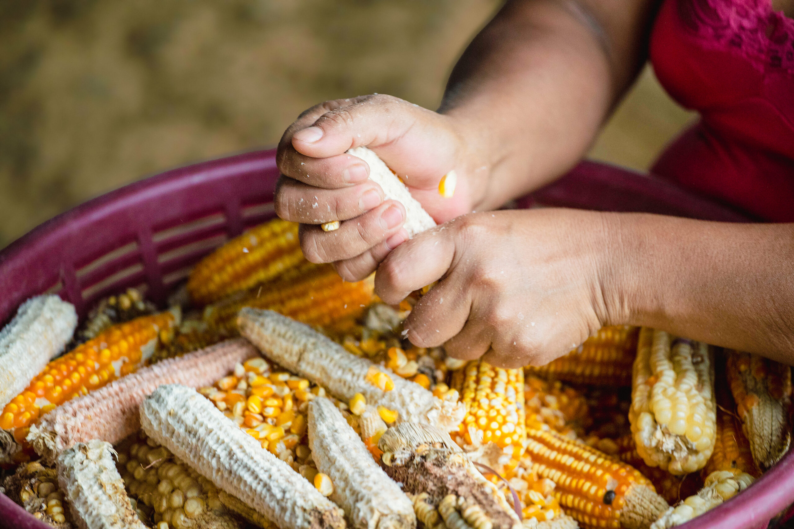 Fue en el año del 2022. La lluvia era mucho más fuerte e intensa que lo habitual. Como fue en el sueño, así mismo pasó en la realidad: la montaña se derrumbó dos veces. Las casas quedaron destruidas. El espacio donde están viviendo ahora es mucho más reducido que lo que tenían antes y el suelo está cubierto de piedras en el que es difícil sembrar. Pero las mujeres no se quedan con los brazos cruzados. Alquilaron un terreno para poder sembrar sus cultivos y el alimento más importante acá en Guatemala: la milpa. También siembran cilantro, cebollín y orégano en la tierra que alquilan. Comenzaron a trabajar con abejas, con las cuales han empezado a cosechar miel. Y tienen sus animalitos.