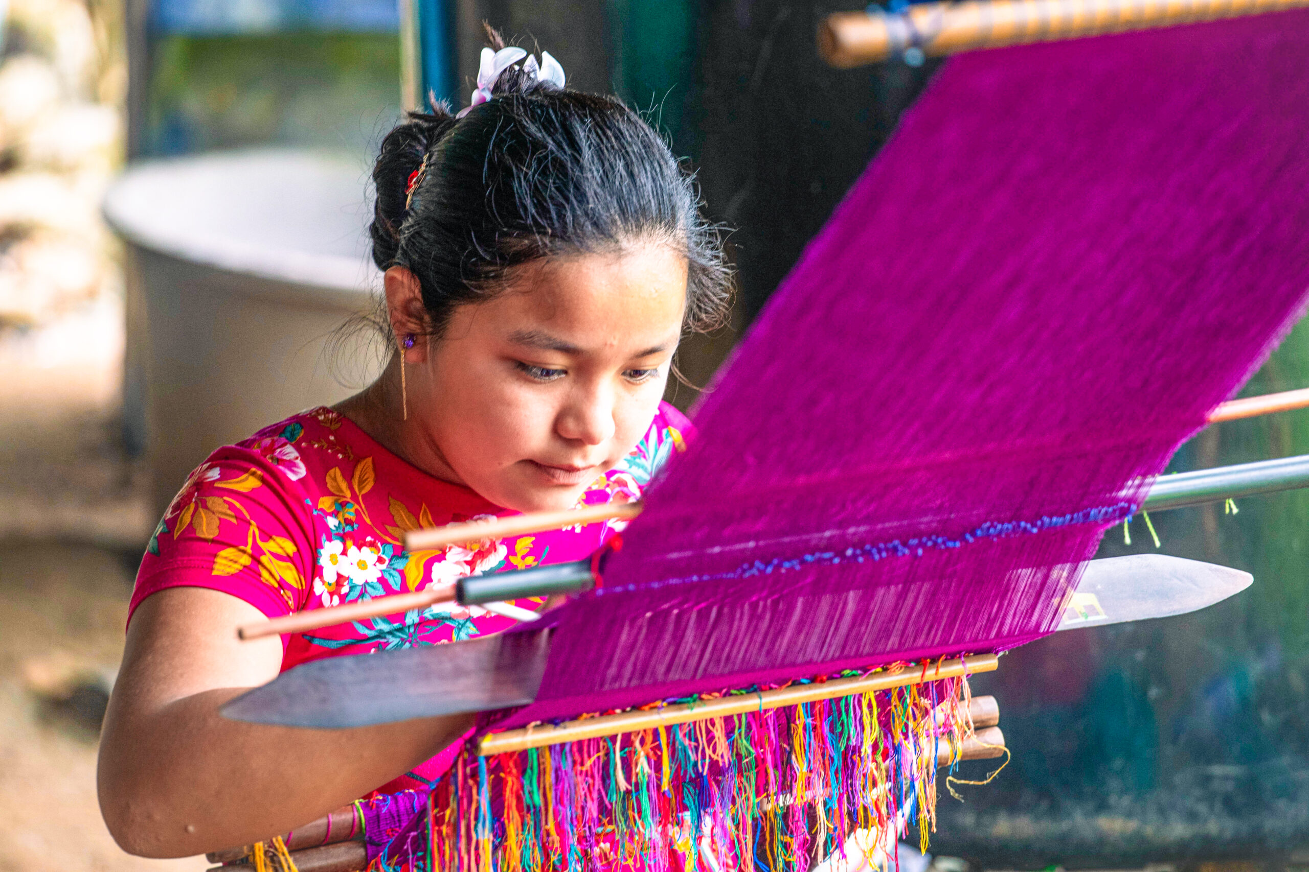 Recuperando parte de su cultura maya, aprendieron o recordaron hace 3 años las técnicas del tejido en un curso. Y además enseñaron a la hija de Ana María, Leydi Viviana de 12 años, a tejer.