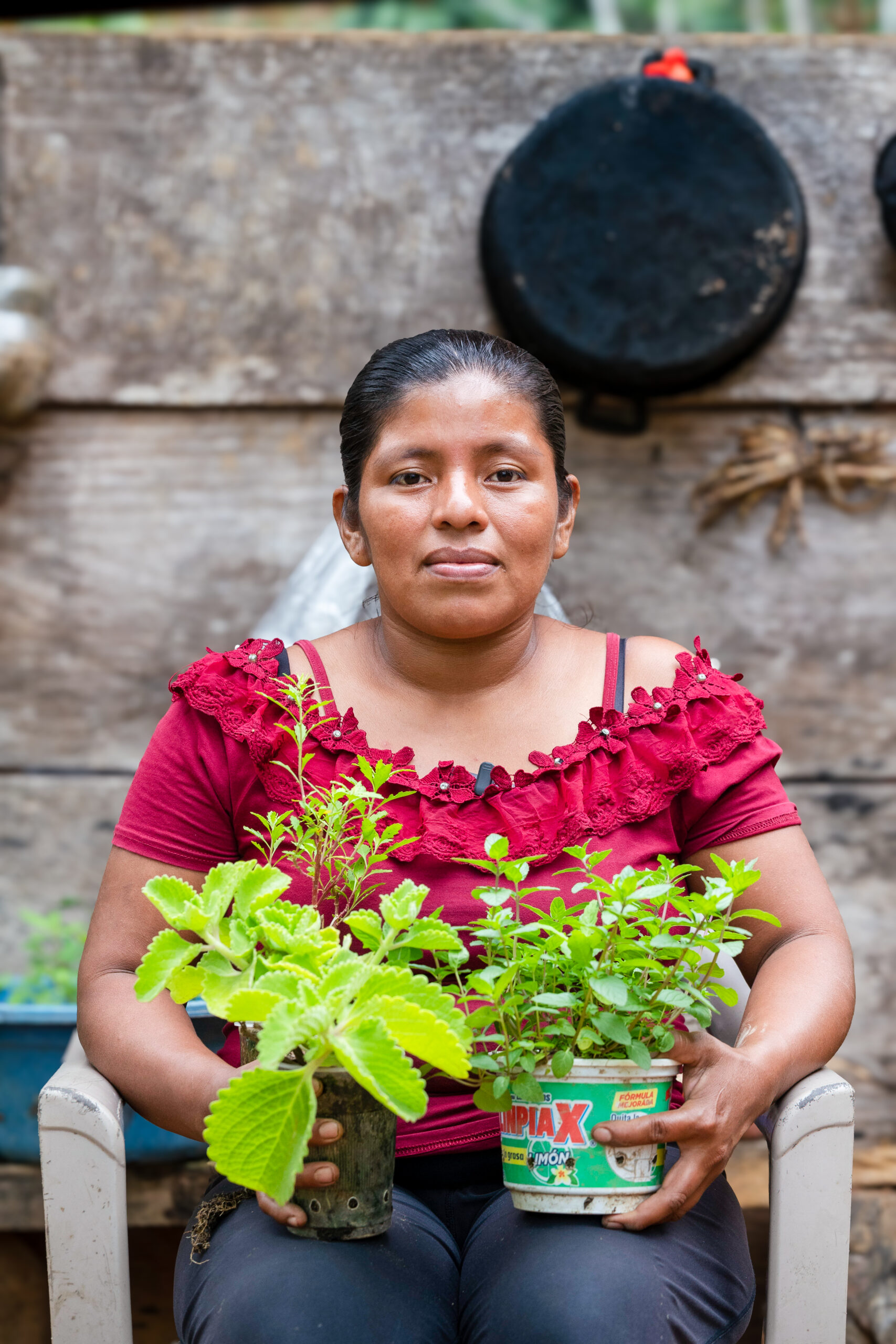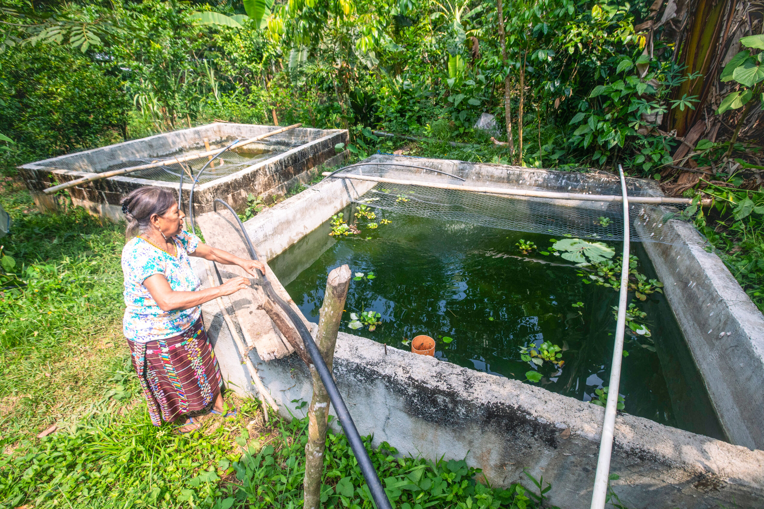 Carmen Jiménez Ortiz, 70 años, vive como ella misma dice, en el paraíso. En el mapa dice Pueblo Nuevo, Ixcan. Y en el idioma indígena Q’anjob’al Ixcan significa la esquina del cielo. Pero el paraíso de Carmen no es celeste o celestial. Es verde. Tiene varios árboles grandes alrededor de su casa y en su jardín que le provee de sombra. Hace que los calores extremos por estos lados, sean más llevaderos. Carmen nos ha preparado un caldo de caracol que es considerado una delicia para muchos de los pueblos mayas acá en el norte de Guatemala. En su jardín también tiene tilapias para venta.