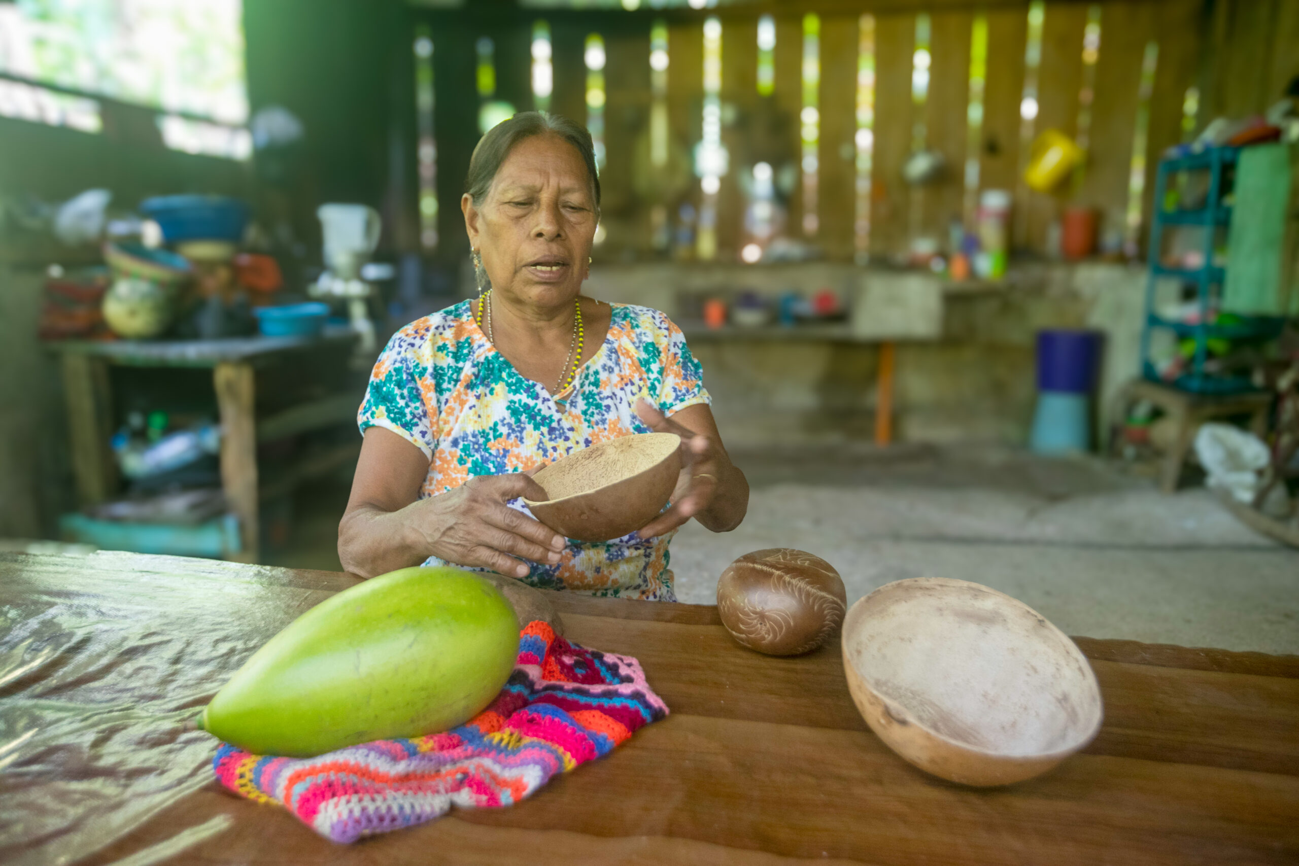 En su resguardo Buenavista, del pueblo indígena Siona, han sufrido mucho durante el conflicto armado de durante décadas. Y siguen sufriendo. Por eso decidieron trabajar los traumas en las mujeres para que puedan seguir adelante con sus vidas a pesar del sufrimiento: “Nosotros sufrimos la guerra, quedamos mujeres solas, con niños, otras quedaron sin familia. Ha sido difícil y como mujer también sufrí el impacto de la violencia”