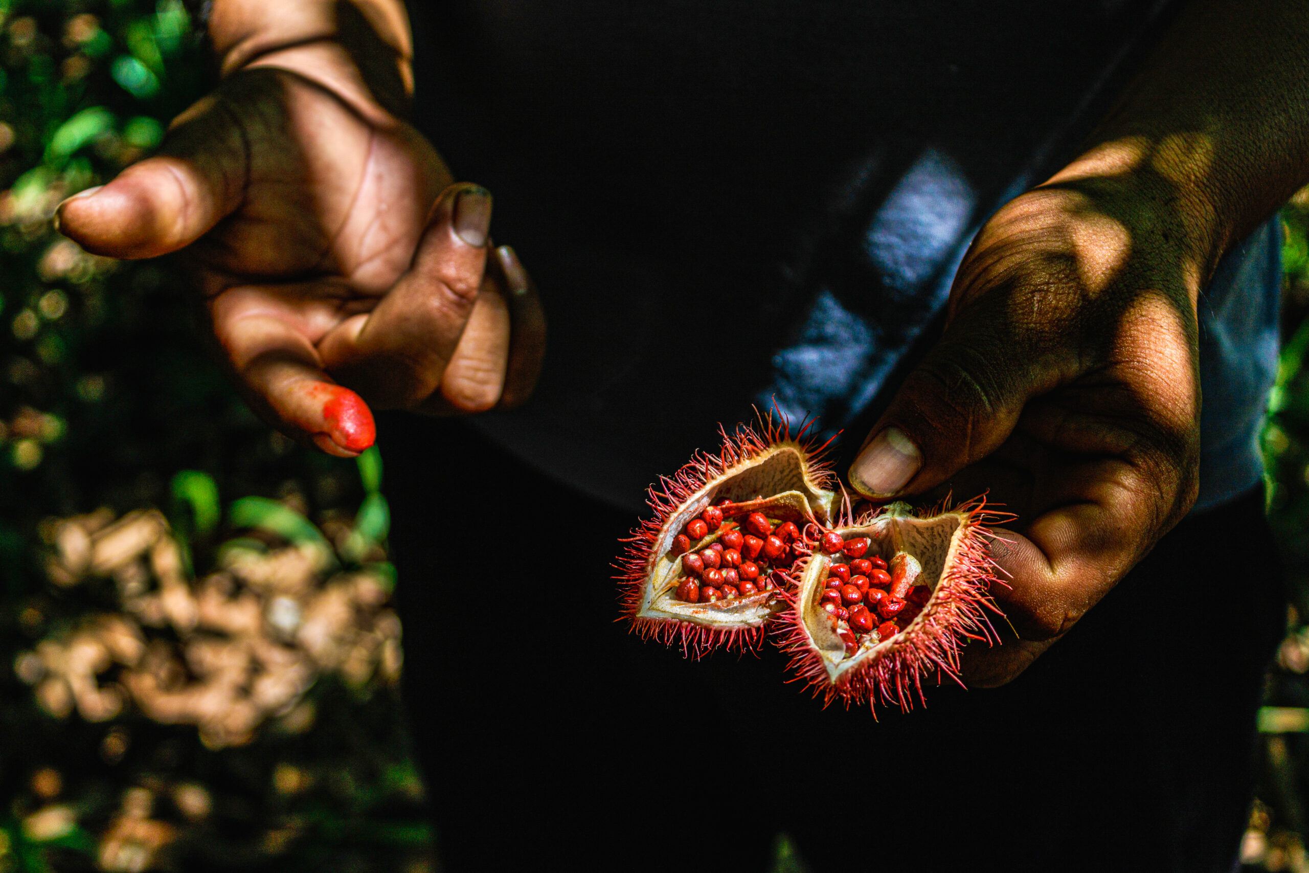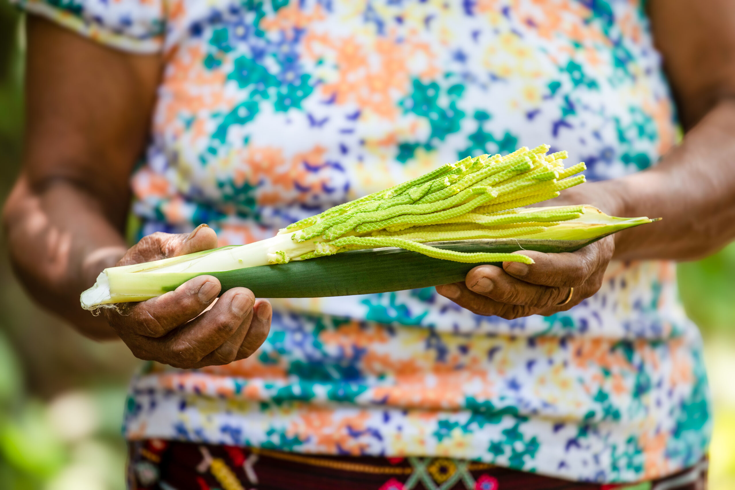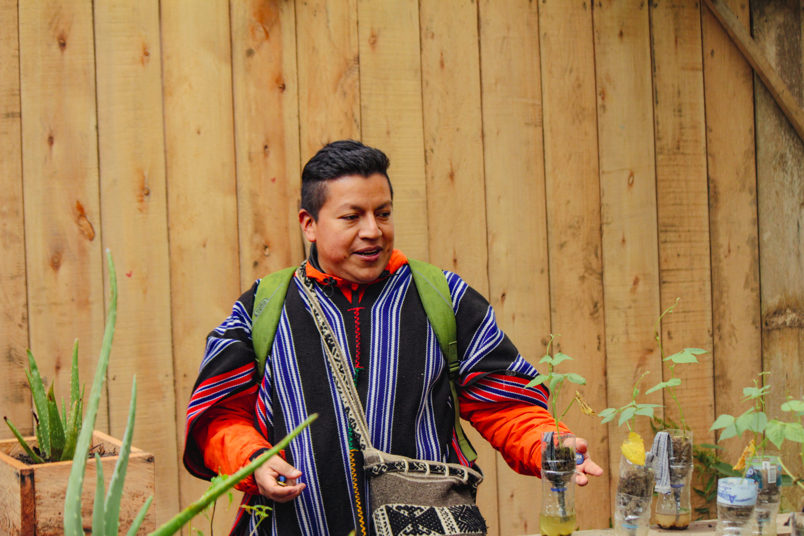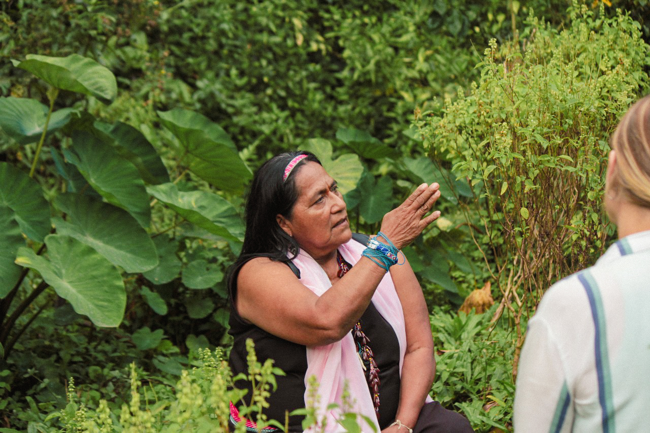Y hablar de educación, enseñanza y transmisión de conocimiento no quiere decir solamente estar sentada y tomar notas en un cuaderno. También quiere decir conocer y trabajar la tierra, explica la lideresa del pueblo indígena Inga: “Para mí la tierra es sagrada porque ahí están los alimentos que nos da, sembramos y ahí estamos protegiendo las semillas. Y nos estamos nutriendo mejor con productos sanos. En la tierra es donde estamos escribiendo, sembrando y cuidando a la vez para no olvidar el conocimiento. La forma en que los niños y las niñas aprenden no solo es anotar apuntes en un cuaderno sino nosotros también estamos enseñando a leer y escribir en la tierra. Escribir en la tierra es saber sembrar. ¿Saber en qué tiempo estamos para sembrar el azafrán? Que es un condimento muy sano. Hay varios componentes de plantas – medicinales, condimentos, artesanales, y es muy importante saber que eso es la forma que uno enseña a leer y escribir en la tierra. Porque eso es mental. Los niños van conociendo la tierra, van sembrando. Y eso es escribir para mi”.