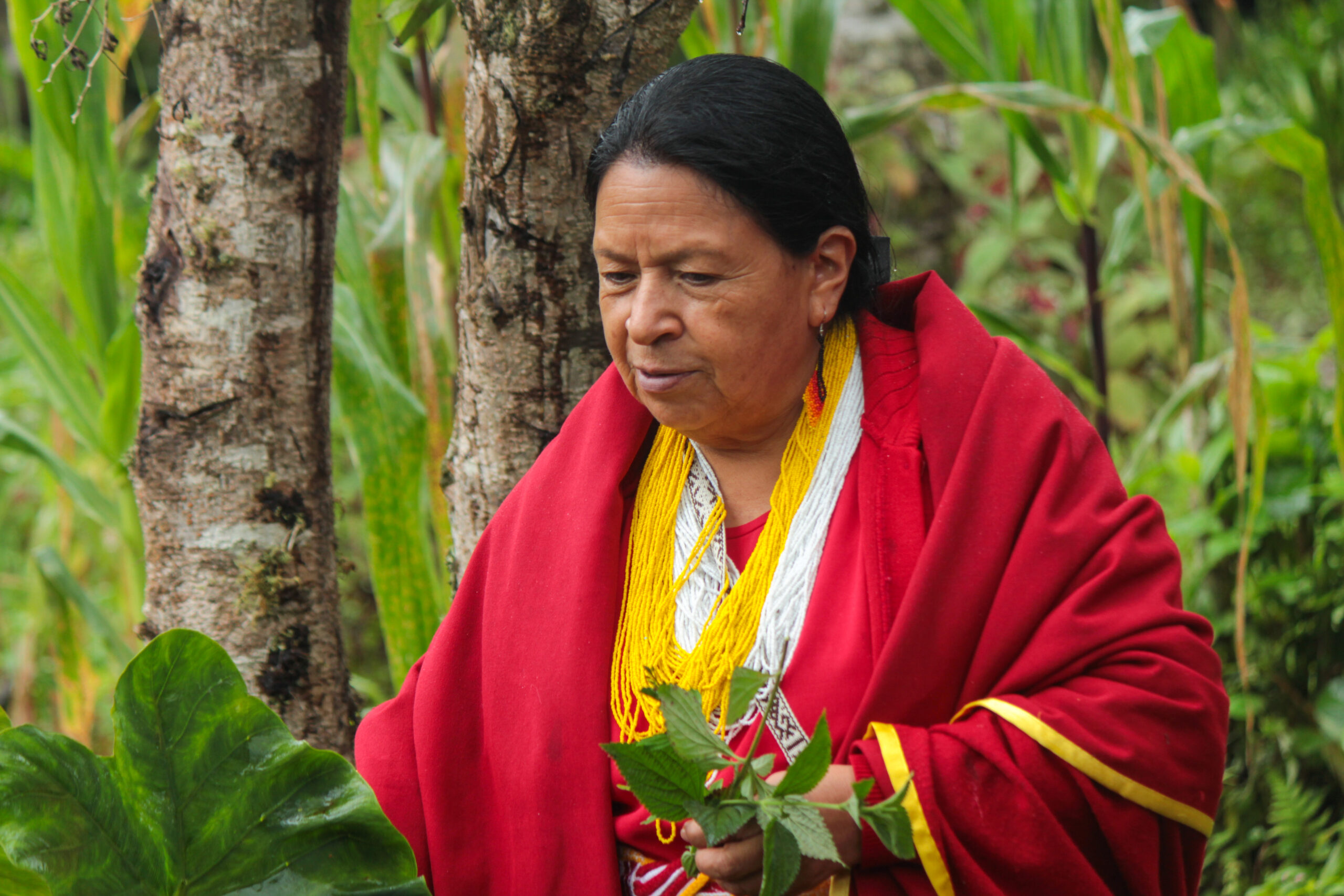 “Las mujeres desde nuestros territorios estamos protegiendo las aguas, la tierra y las semillas criollas y es en conectividad con el resto del territorio de Asomi. Es esencial que no se pierde este conocimiento de la medicina tradicional y de las plantas. Es muy importante cuidar el agua, el territorio y los sitios sagrados. Es muy fundamental para el pueblo Inga porque ahí está la salud, el bienestar, la propia educación porque si dejamos de enseñar se pierde el conocimiento, la necesidad de proteger el agua limpia, para la medicina y los alimentos. Si contaminamos el agua van a llegar enfermedades y plagas y nos vamos acabando. Es muy importante que conservemos y cuidemos porque el agua es la vida para los seres humanos, para los animales y para las plantas,” explica Yolanda Jacanamejoy Mutumbajoy.