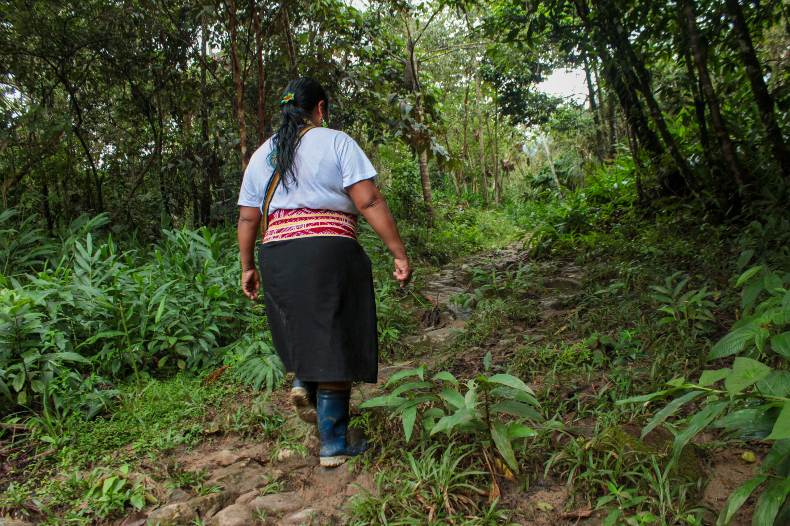 Mami, ¿usted sabe qué es cambio climático? Yo solo sé que acá hay un proyecto minero que se está desarrollando, minería, transición energética. ¿Qué es eso de transición energética? ¿Qué son bonos de carbono? Y esos fueron términos que ya se allá hay un ejercicio y un trabajo hacia fuera, pero que acá apenas medio lo estamos escuchando, ya son licencias ambientales que están desde antes que yo naciera. Entonces, ha sido importante poder salir, poder incidir, poder aprender, desaprender también y hacer una mediación entre el conocimiento de afuera y el conocimiento propio. Poder sentarme en una mesa y decir, Bueno, nosotros no necesitamos transición energética, nosotros no necesitamos minería. Y si me dicen, Es que usted tiene celular. poderle decir, Puedo vivir sin celular, pero no puedo vivir sin agua.”