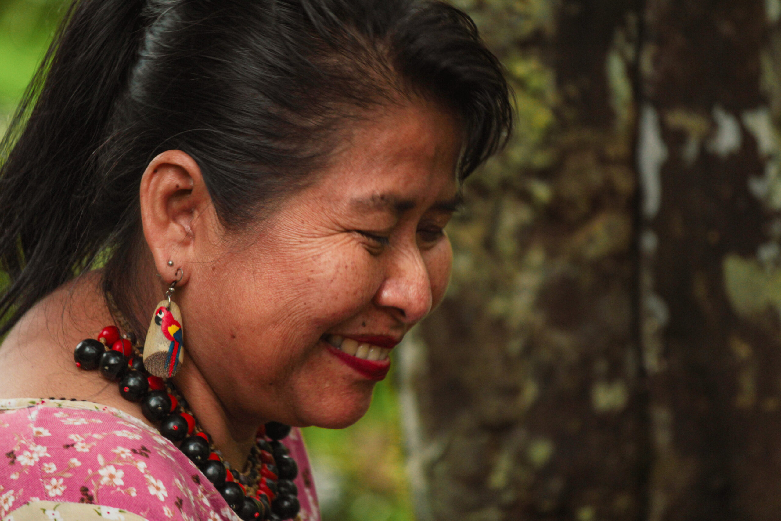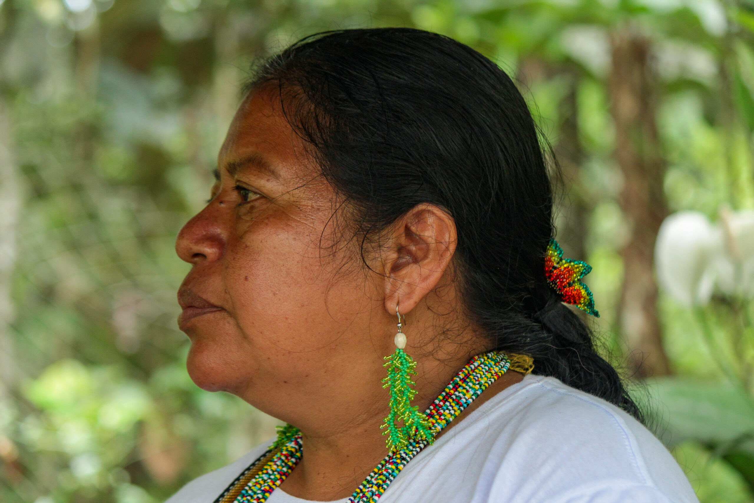 “La deforestación amenaza al territorio y nos afecta a nosotras como mujeres, la parte económica y la parte de salud también. Tenemos que hervir el agua para beber y ya no tenemos el mismo pescado como antes. Como lideresas somos las que cuidamos nuestro territorio. El territorio es importante para mí porque he nacido ahí y estoy envejeciendo y veo criar a mis hijos. Es algo que los ancestros nos han dejado a nosotros, algo que no se puede dejar. Es mi chacra, mis hijos, mis animales, mi territorio, mi bosque. No nos podemos ir.”