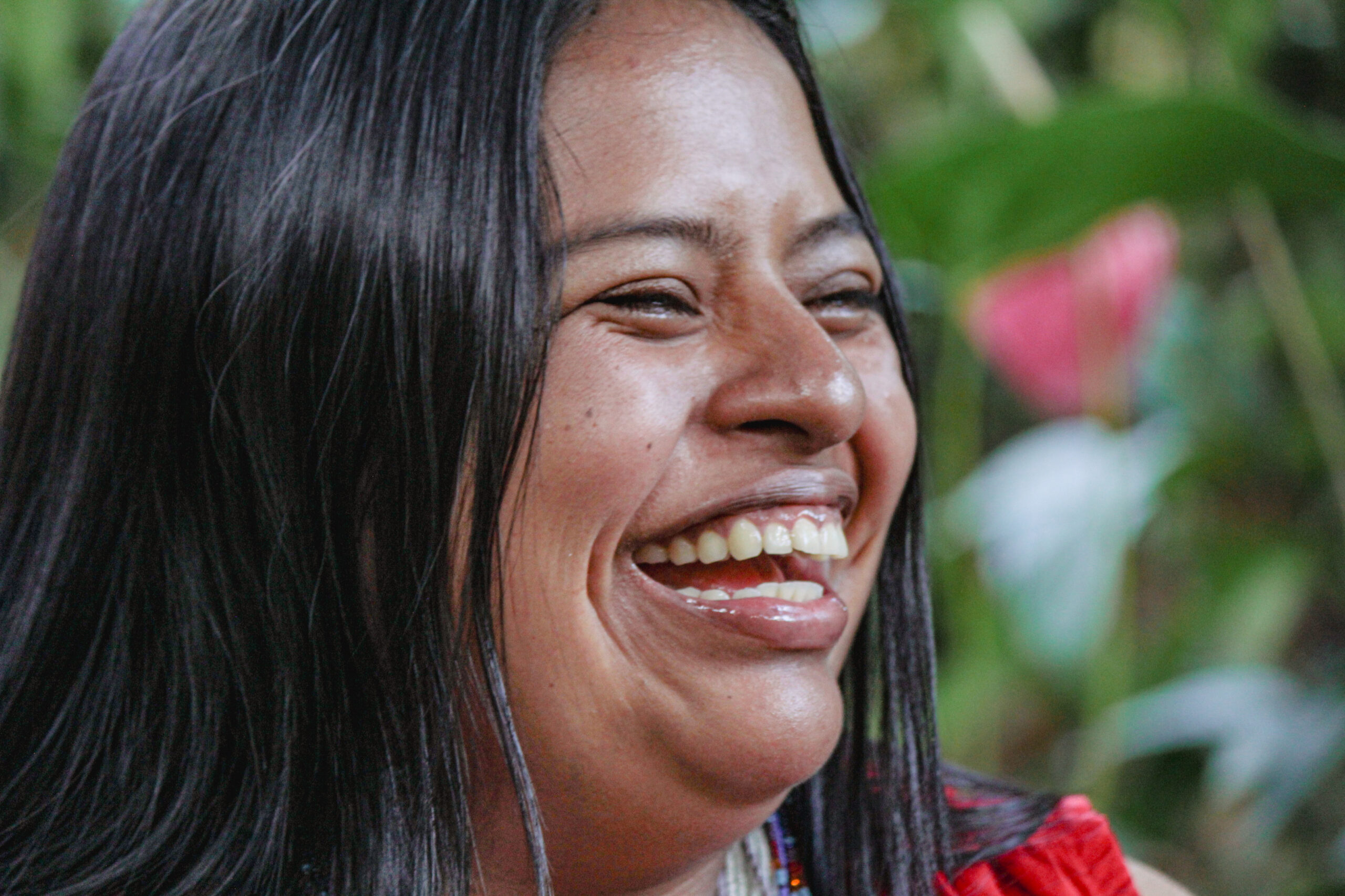 ¿Qué te motiva? “Como joven, he visto tanto problemática en mi comunidad y también se ve en la organización. Empecé muy chiquita de ir a talleres con mi mama y me llama la atención la defensa del territorio y nuestros derechos como mujeres indígenas porque a veces nos vulneran. Siempre voy a defender mi territorio porque yo nací ahí. Y sé el sufrimiento que han hecho mis ancestros, mis abuelos. Sé cuántos de ellos se han muerto por defender nuestros territorios. Hace tiempo viví en la ciudad, pero jamás me olvido de mis raíces, siempre voy a defender el territorio, mis bosques mis ríos, los animales. Siempre”.