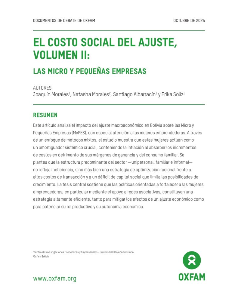 El Volumen II profundiza en los efectos del ajuste sobre las micro y pequeñas empresas, destacando el papel de las mujeres emprendedoras como amortiguadoras de la crisis al absorber los incrementos de costos que deberían trasladarse al consumidor.